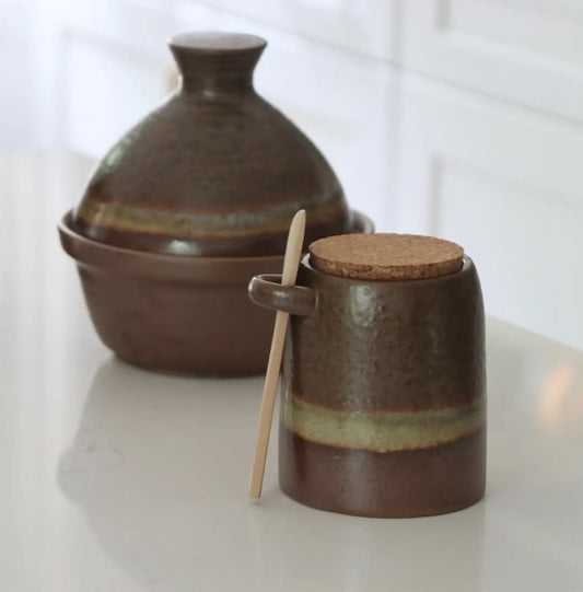 Limited Stock Please Call StoreStoneware Salt Jar Wood Spoon Set | Multicolor