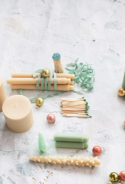 Tree Unscented Taper Candle Set | 10in Green + Gold Tipped