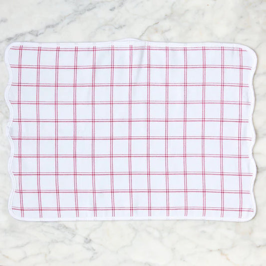 Weezie Towels Luxury Scalloped Kitchen Towel Set of 2 | Red Windowpane