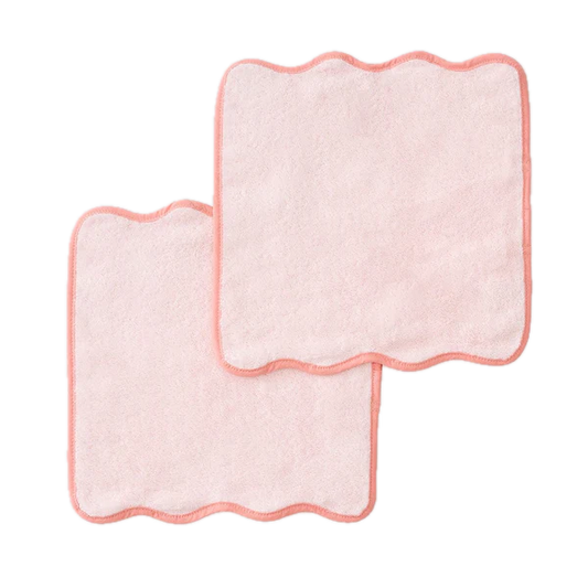 Weezie Towels Luxury Scallop Edge Washcloth Set of 2 | Pink + Coral Piping