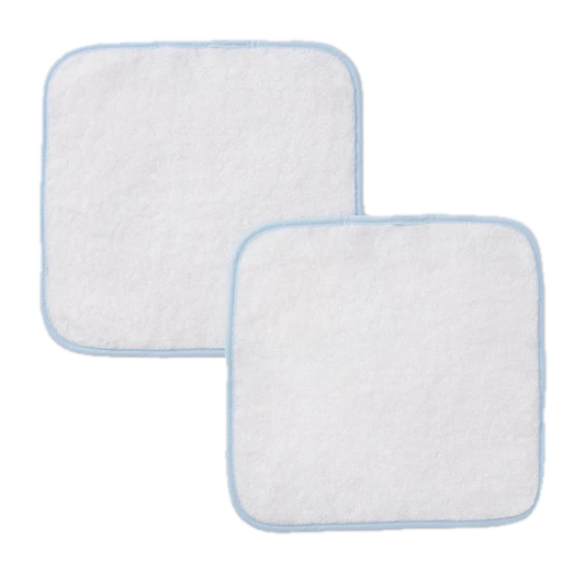 Weezie Towels Luxury Signature Piped Edge Washcloth Set of 2 | Light Blue Piping