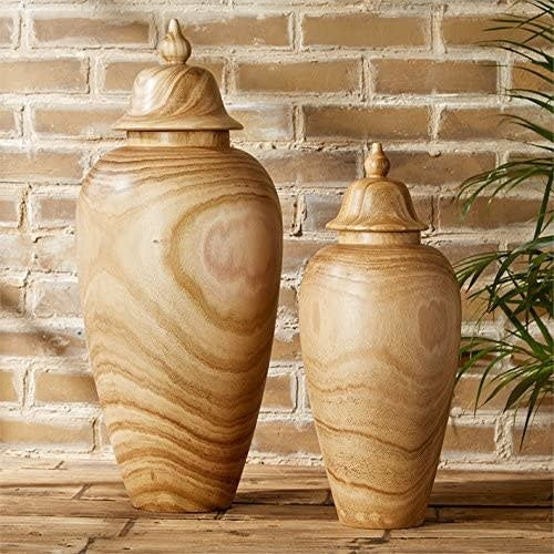 Wood Temple Jar w/ Lid