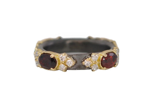 Garnet + Diamond Blackened Sterling Silver + 18k Yellow Gold Station Band | S7