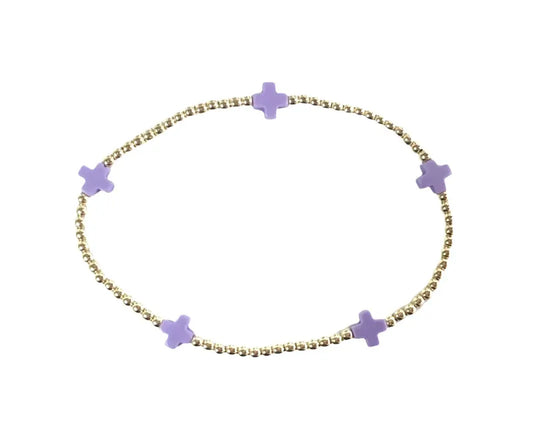 eGirl Signature Cross Small Gold Pattern Bead Bracelet | Purple 2mm