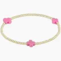 eNewton Signature Cross 2mm Bead Bracelet | Bright Pink