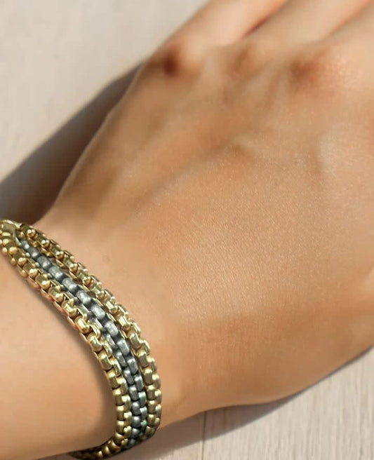 Mixed Curb B Multi Strand Two Tone Bracelet