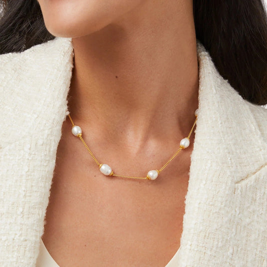 Antonia Tennis Gold Necklace | Iridescent Bahamian Blue 19in+