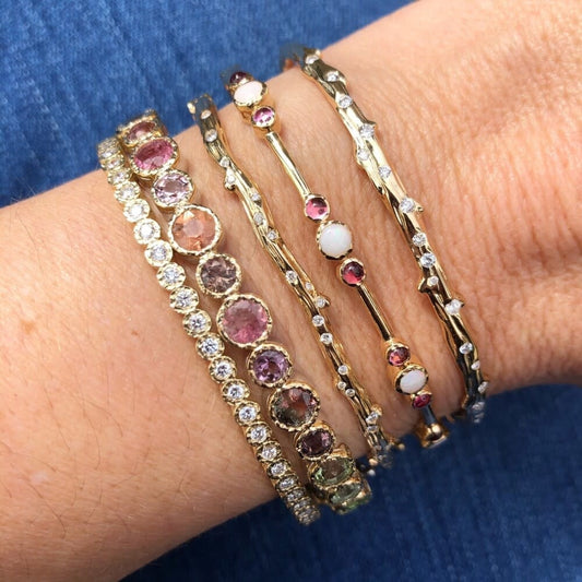 Mixed Tourmaline Bezel Set Bangle Bracelet | 4.95c 14k + 925
