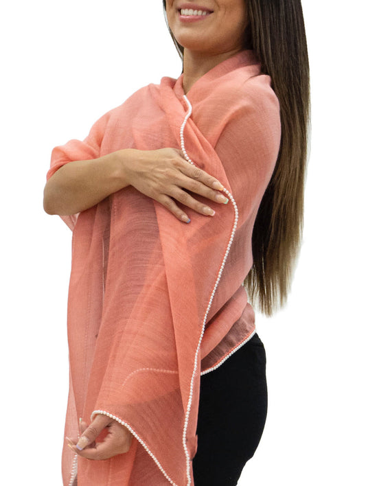 Breezy Wool + Silk Scarf With Pearls | Coral