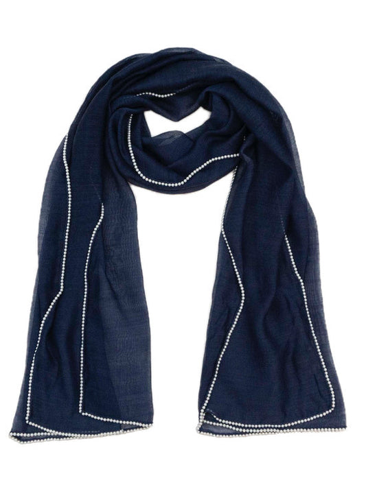 Breezy Wool + Silk Scarf With Pearls | Navy