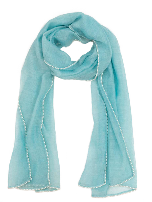 Breezy Wool + Silk Scarf With Pearls | Ice
