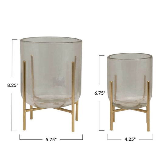 Glass Vase Candle Holder + Gold Stand | 8.25in
