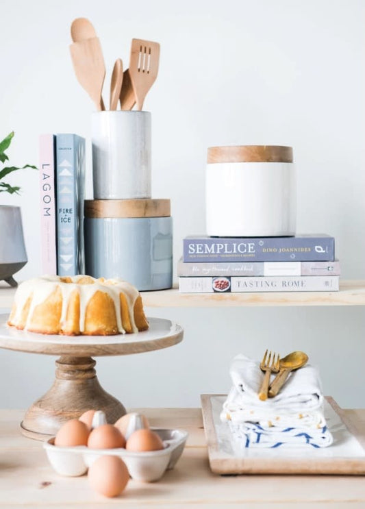 Limited Stock Please Call StoreCream Enamel Mango Wood Cake Stand | 12in
