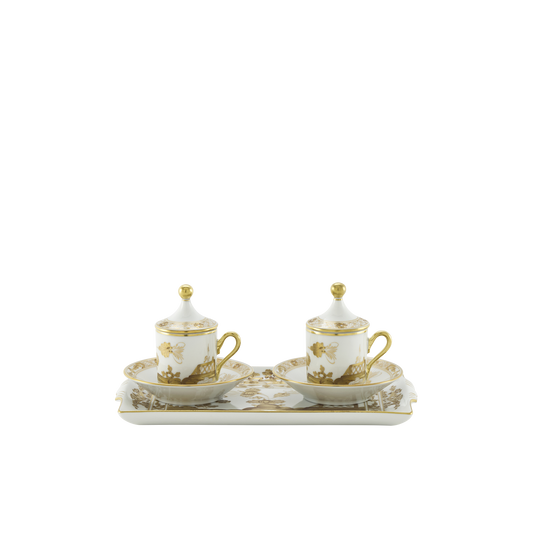 Ginori 1735 Oriente Italiano Aurum Coffee Set of 2 with Tray | 7Piece
