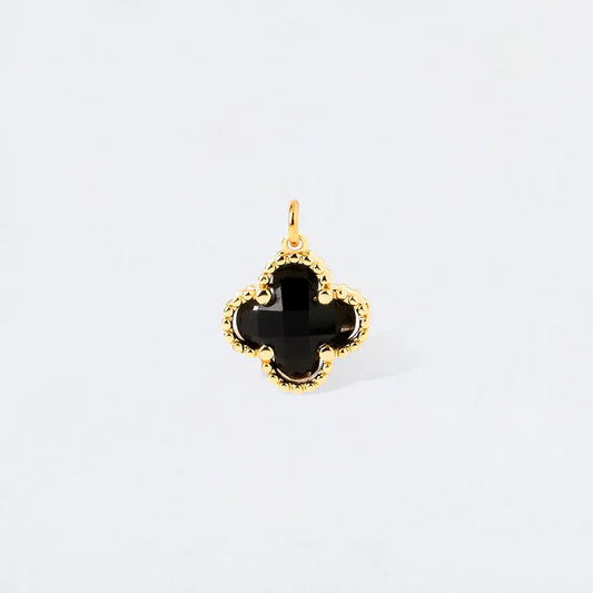 Beaded Pebble Trim Textured Clover + Crystal Charm Pendant