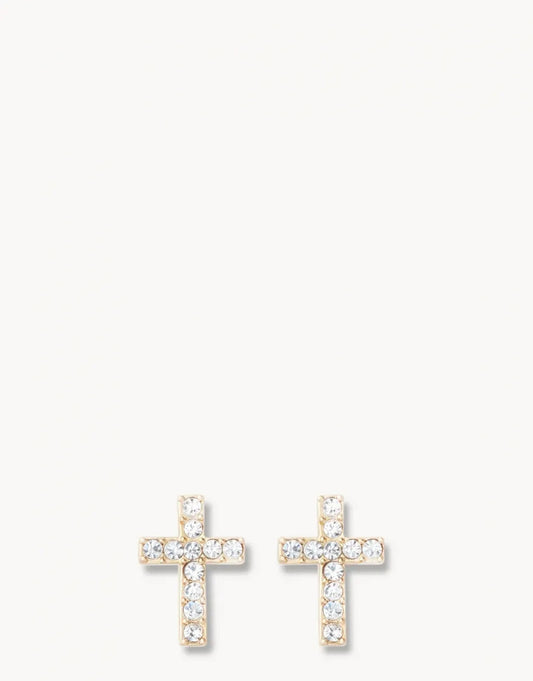 Have Faith Crystal Cross 18k Gold Plate Stud Earrings