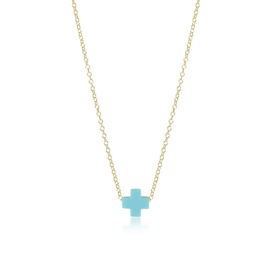 egirl Signature Cross Necklace Gold Turquoise 14in