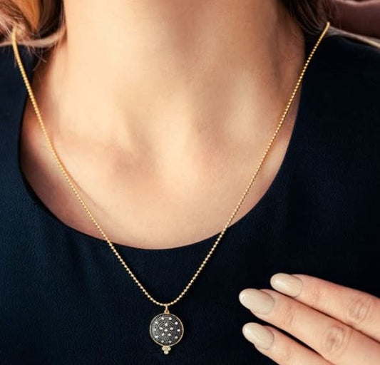 Gold & Black Pave Disc Pendant Necklace