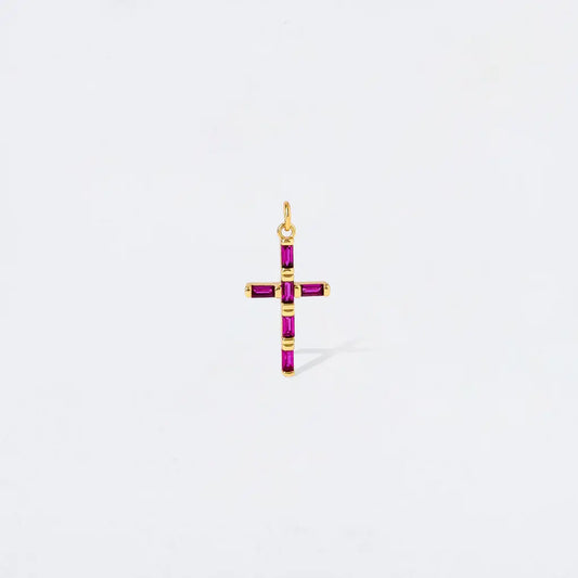 eGirl Small Signature Cross Gold Necklace | 14in Pink