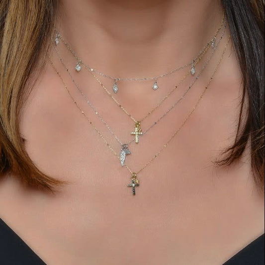 Limited Stock Please Call StorePetite Pave Diamond Cross Pendant With Hanging Quad Necklace