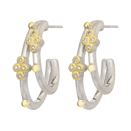 Diamond Quad Double Hoop Earrings | 18k Mixed Metal