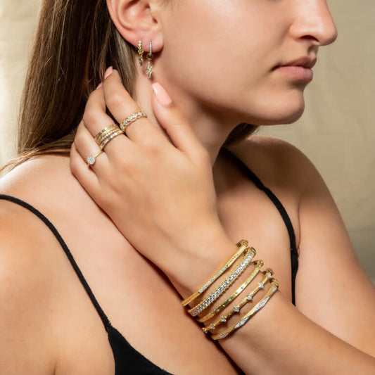 JudeFrances Jewelry blends timeless elegance with modern trends, creating pieces that are both refined and fashion-forward. Best known for its signature hoop-and-charm earring concept, the brand encourages personal expression through versatile designs that can be layered, stacked, and customized — whether with gold bangles, delicate chains, cocktail rings, or simple bands. Founded by Jude Steele, whose background as a photographer informs her keen eye for detail and style, JudeFrances continues to craft collections that feel fresh, stylish, and enduring, inviting women to curate jewelry that tells their own story.