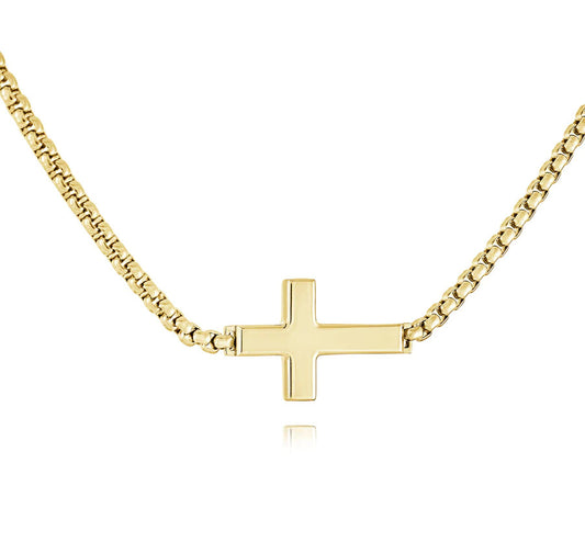 Steel Sideways Cross 2.5mm-22'' Round Box Necklace