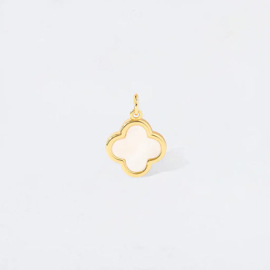 White Mother of Pearl Clover Beaded Border Charm Pendant