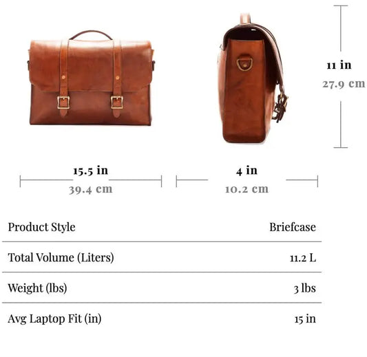 Heritage Leather Buckle Briefcase | 15.5x11x4in