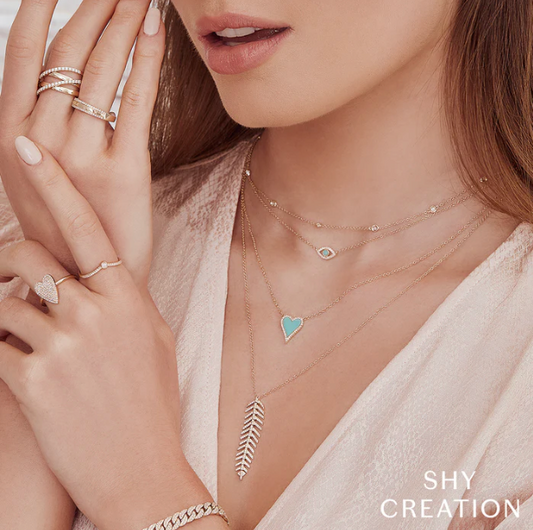 Known for its modern glamour, Shy Creation brings a fresh perspective to fine jewelry with designs meant to be worn every day. Each piece is crafted in 14k gold and accented with dazzling diamonds, balancing timeless elegance with a playful, fashion-forward spirit. From delicate layering necklaces to bold statement rings, Shy Creation offers versatile styles that celebrate individuality and shine with effortless sophistication.