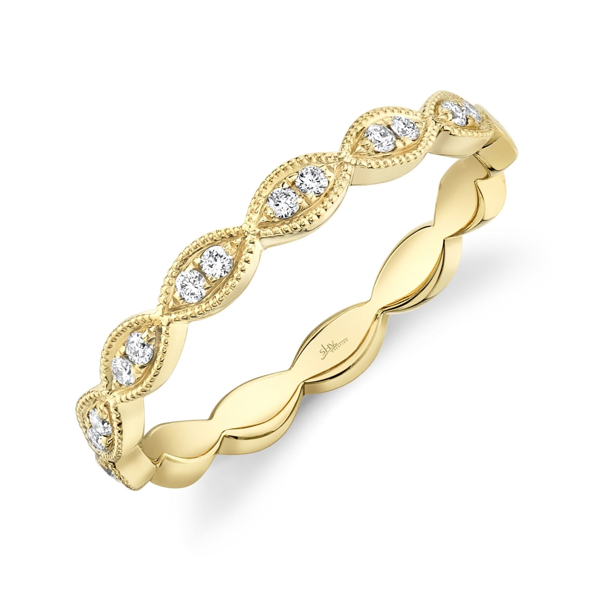 Diamond Marquise Station Beaded Band Ring | S7 14k .13c YG