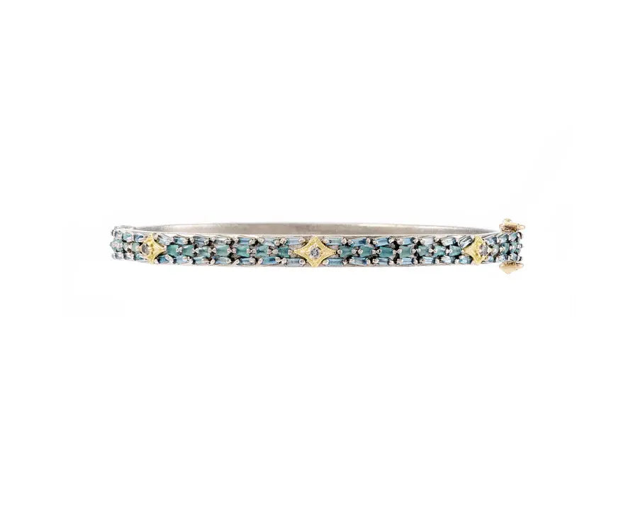 18k Crivelli Kick Cuff Bracelet with Grey Diamonds, Grandidierite + London Blue Topaz