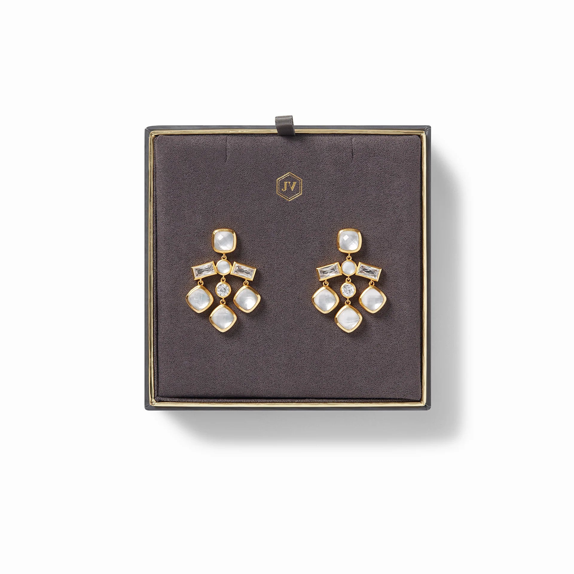 Antonia Chandelier Gold Earrings | Iridescent Bahamian Blue