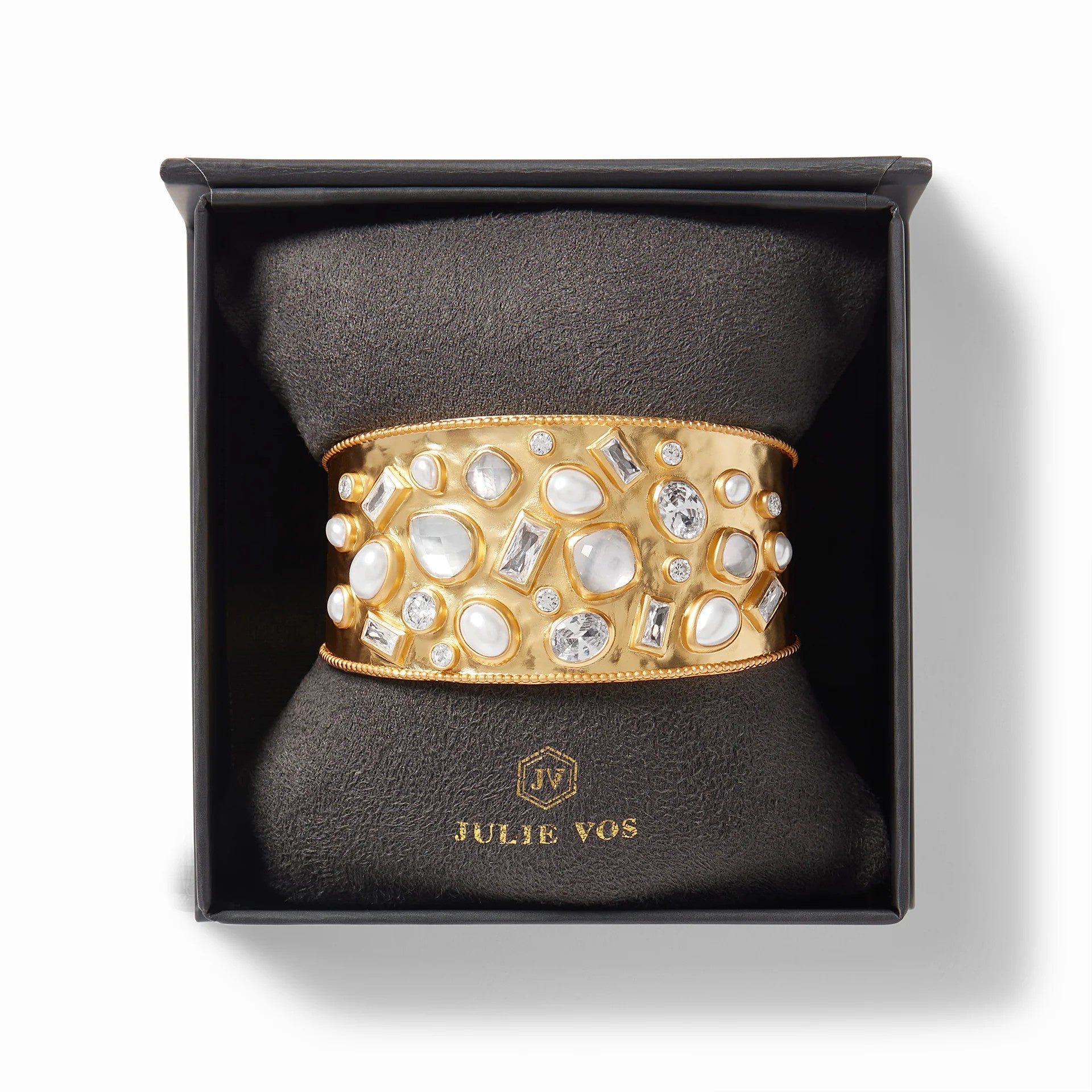 Antonia Mosaic Gold Cuff Bracelet | Iridescent Clear Crystal