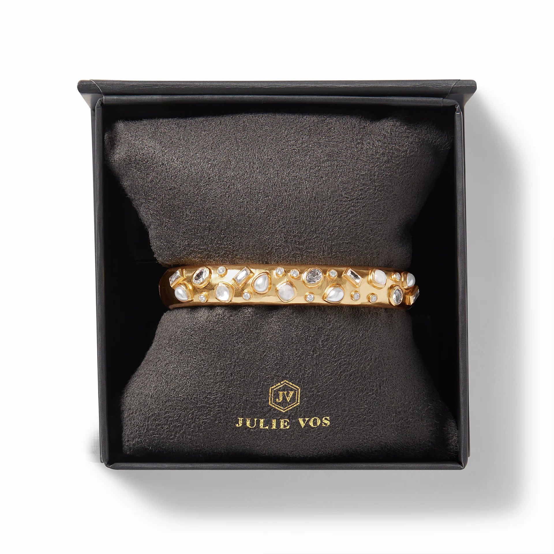 Antonia Mosaic Hinge Gold Bangle Bracelet | Iridescent Clear Crystal