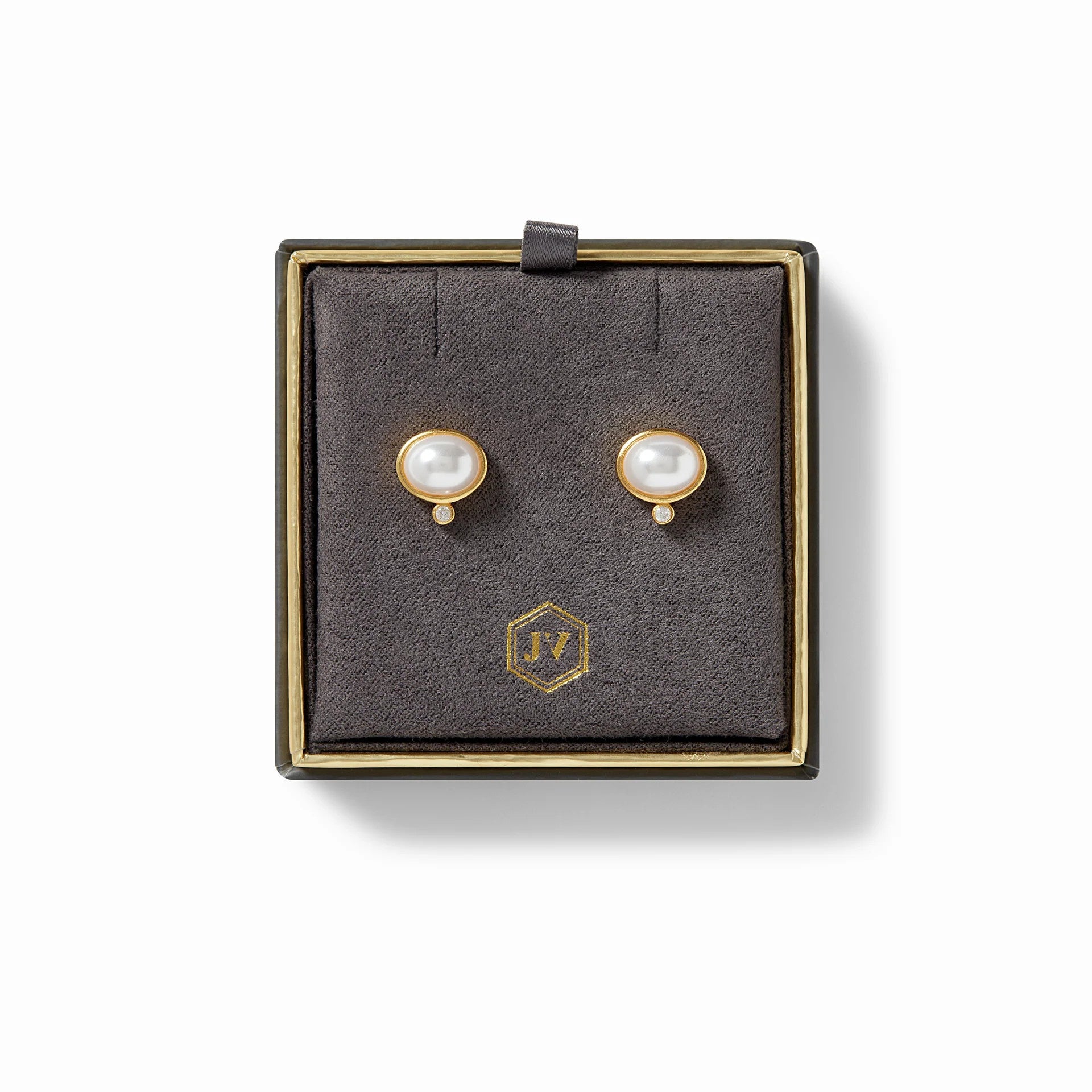 Antonia Oval Stud Gold Earrings | Bahamian Blue