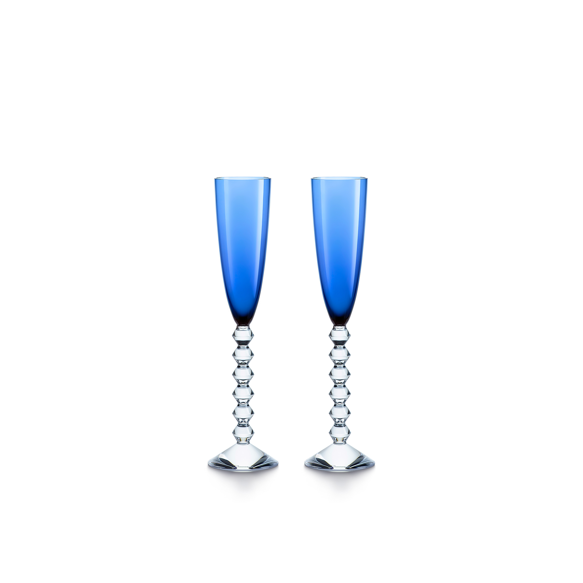Baccarat Crystal Vega Flutissimo Blue Champagne + Cocktail Flute Set of 2 | 11.3in + 6.09oz