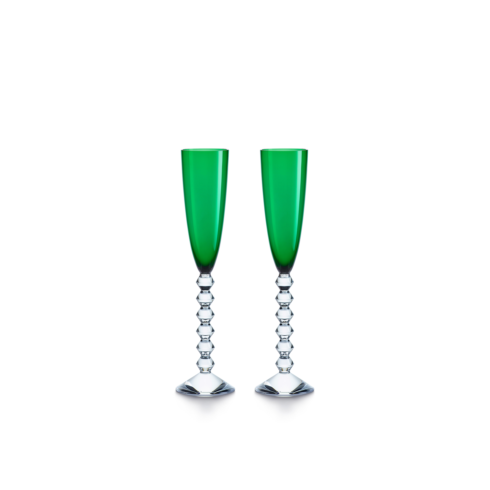 Baccarat Vega Flutissimo Green Flutes Set of 2 | 6.1oz