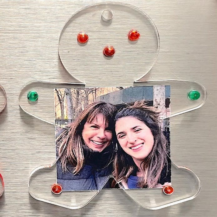 Packed in a set of 3 different ornaments in a color gift box. Each ornament is approximately 4" wide. In addition, the two panels can be separated to become two frames that can attach to any metal surface, for year-round use.