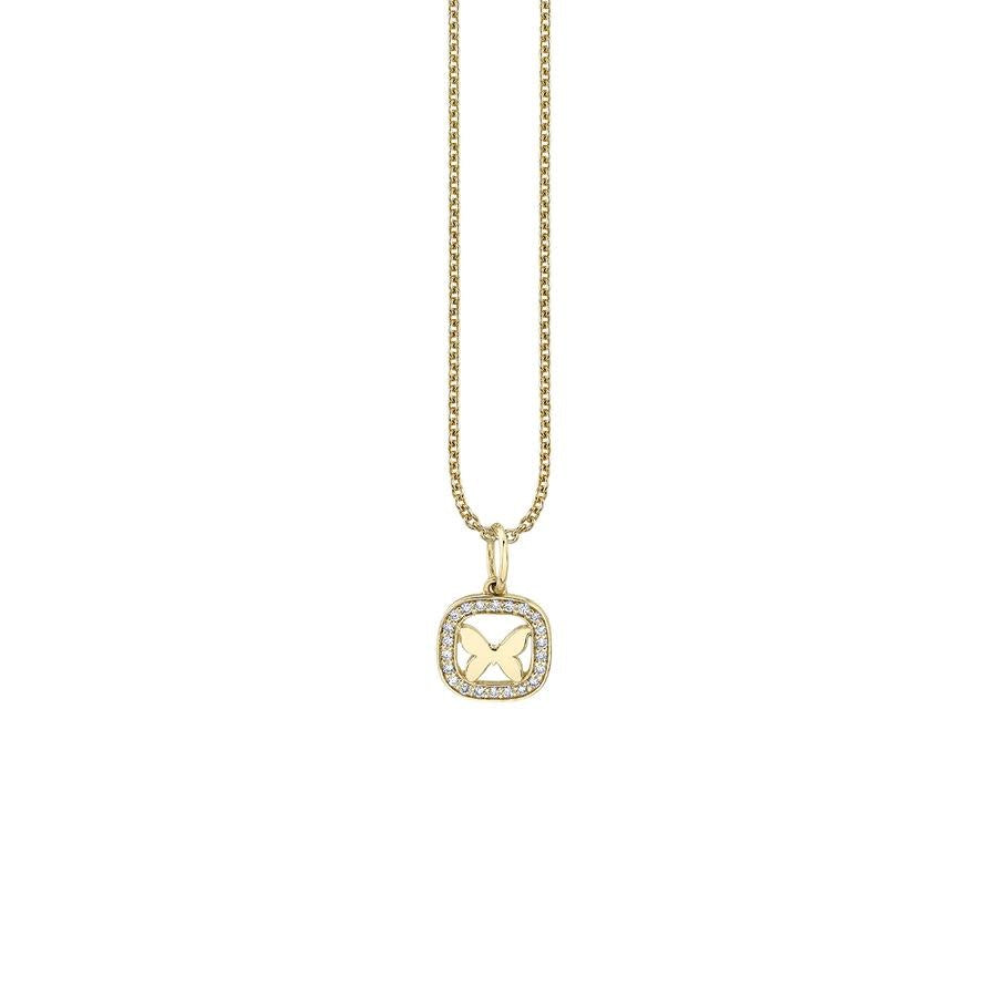 - 14k yellow gold and diamond butterfly charm necklace.