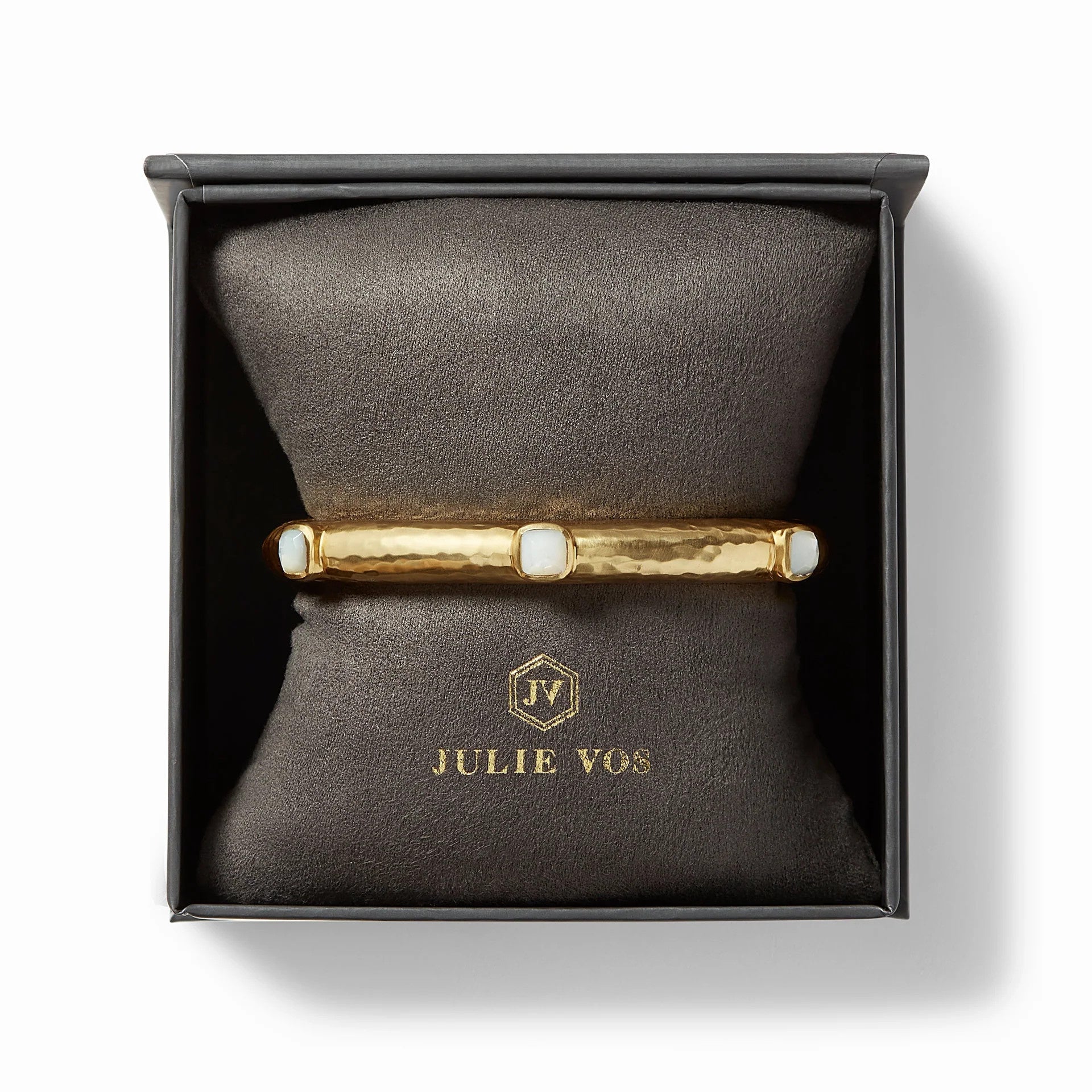 Catalina Hinge Gold Bangle Bracelet | Iridescent Bahamian Blue