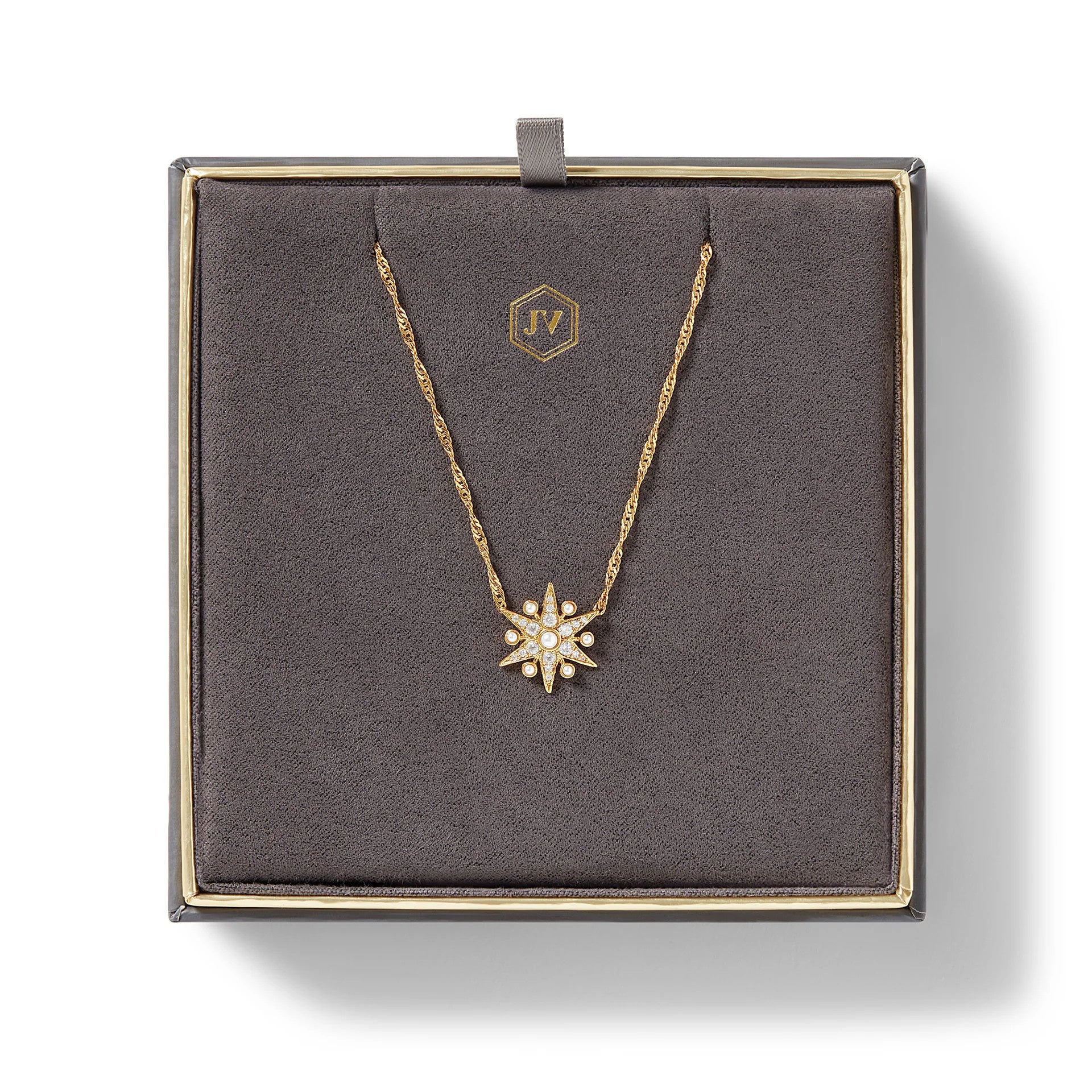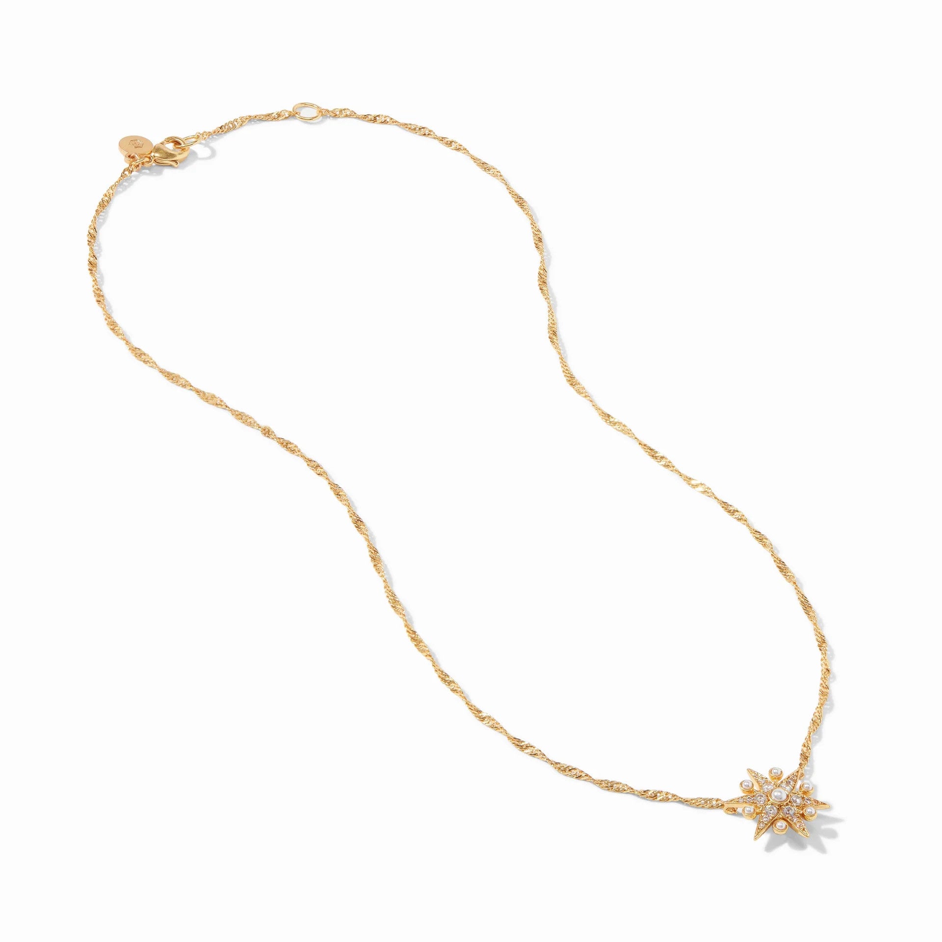 Celeste Starburst Solitaire Gold Necklace | Cubic Zirconia 16.5in+