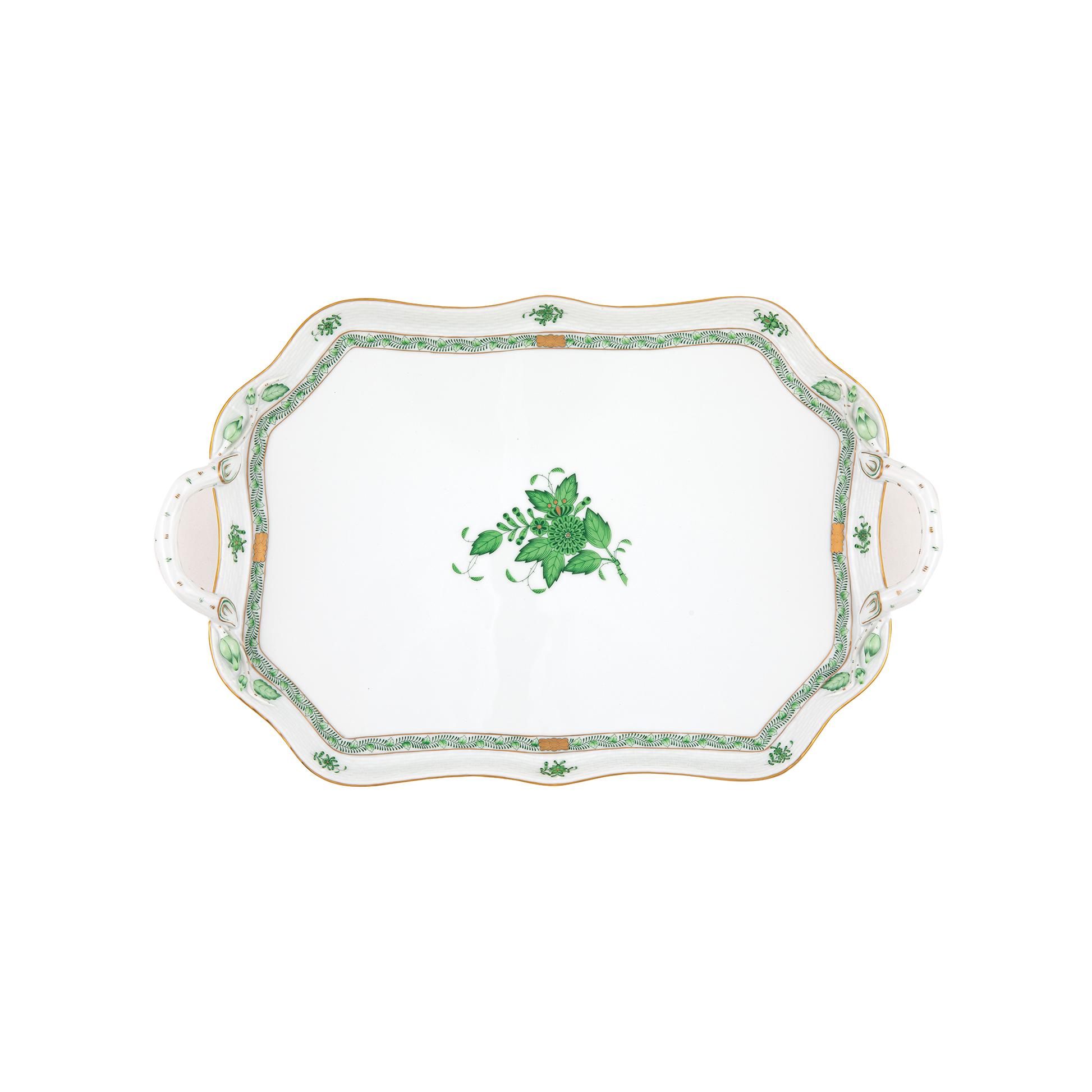 Herend Chinese Bouquet Green Rectangular Tray with Branch Handles | 18in