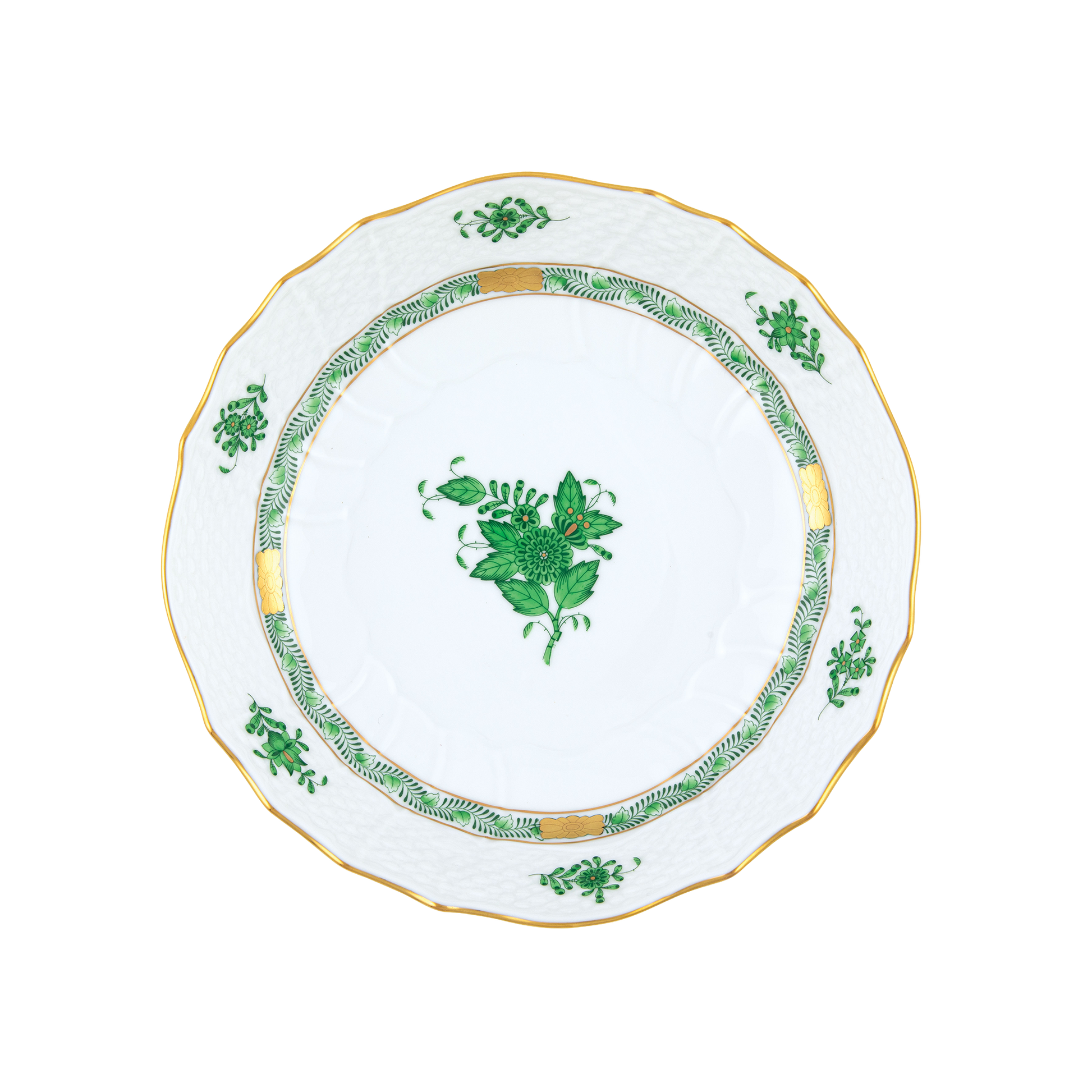 Herend Chinese Bouquet Green Scalloped Dinner Bowl | 8 in