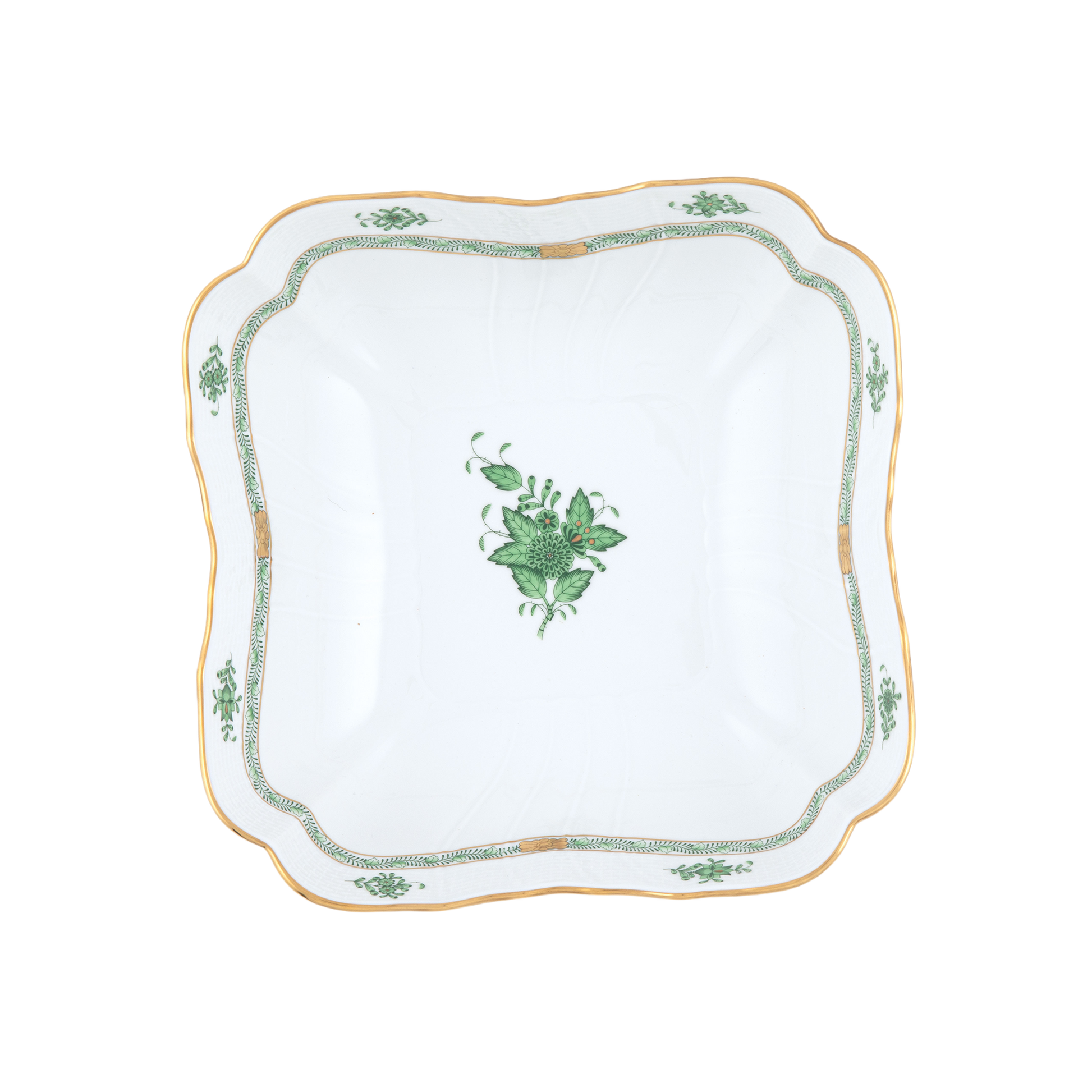 Herend Chinese Bouquet Green Square Salad Bowl | 10x10in