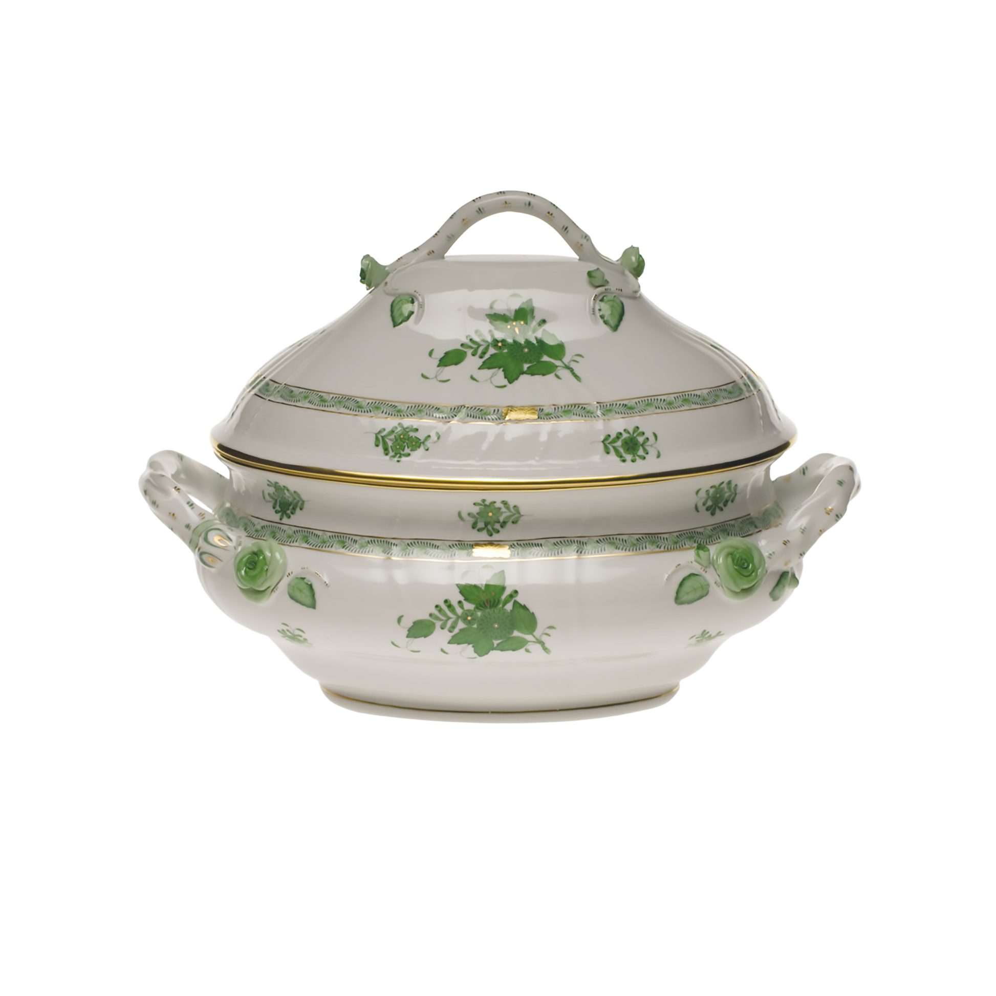 Herend Chinese Bouquet Green Soup Tureen with Branch Handles | 4qt
