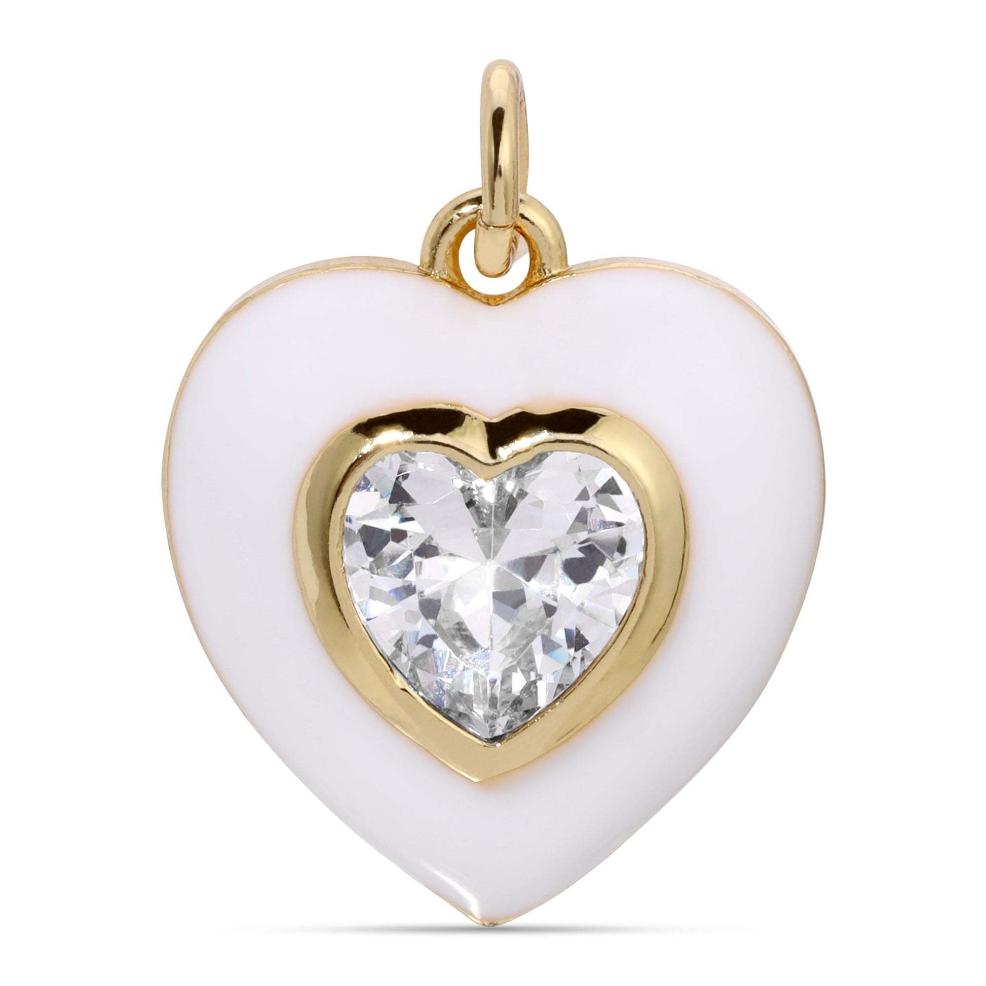 White Enamel Crystal Double Heart Charm Pendant