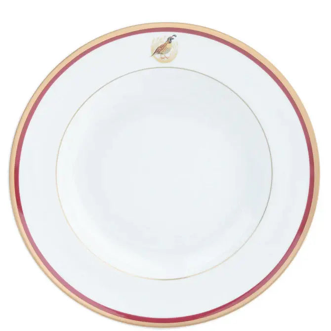 Charlotte Moss Ultra-White Gold Dinner Plate | Quail Burgundy Red