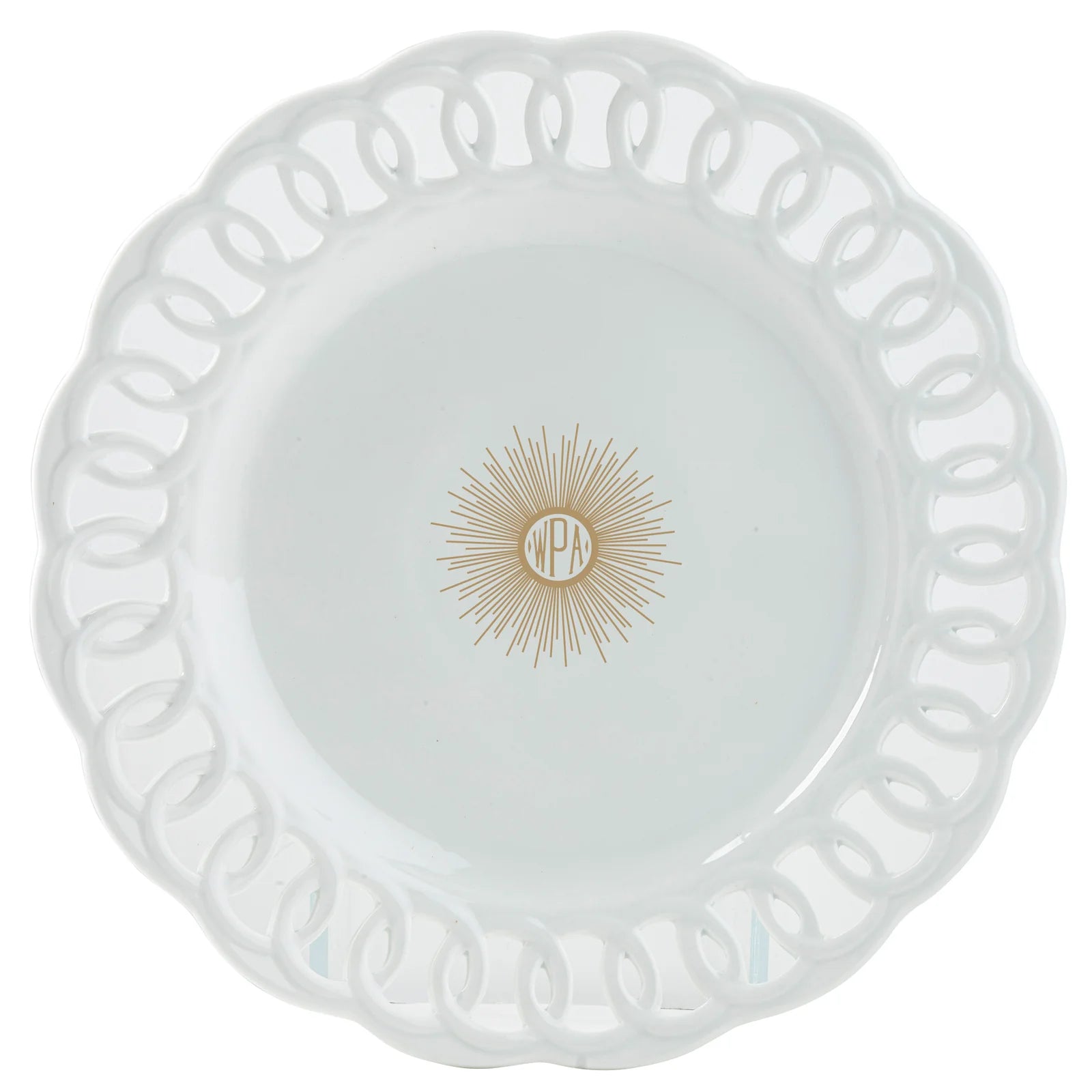 Signature Ultra-White Gold Open Rim Round Platter | Monogrammed