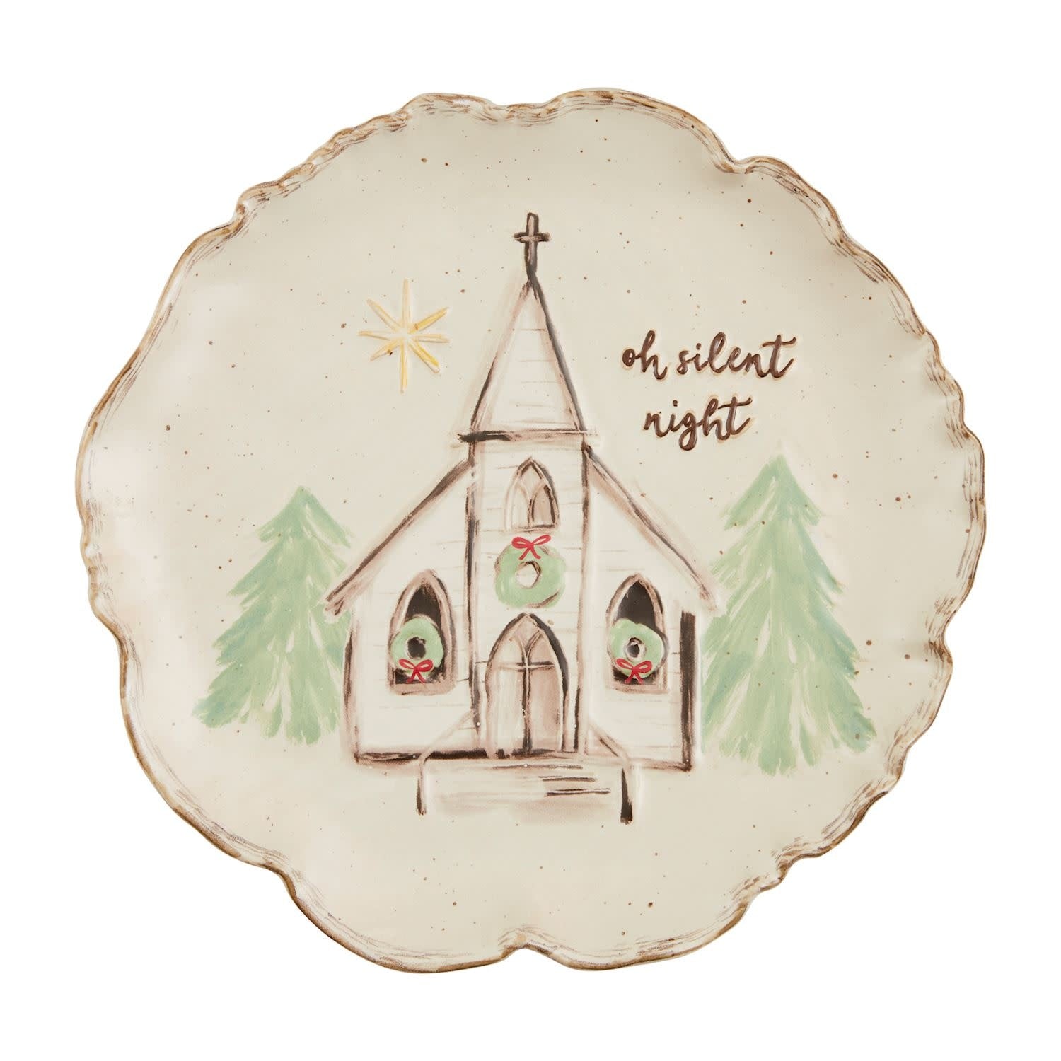 Oh Silent Night Church Hand Painted Stoneware Platter | 12in